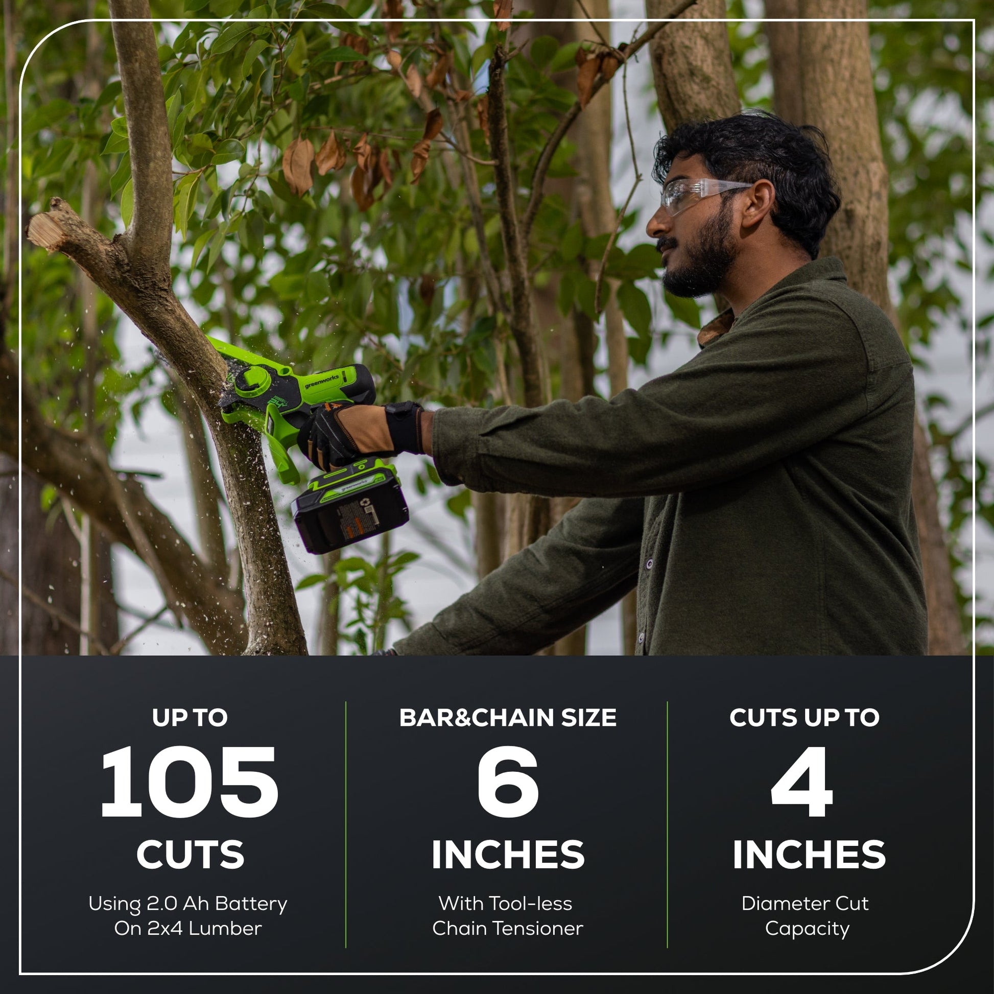 24V 6” Cordless Battery Brushless Pruner Saw w/ 2.0Ah Battery & Charger