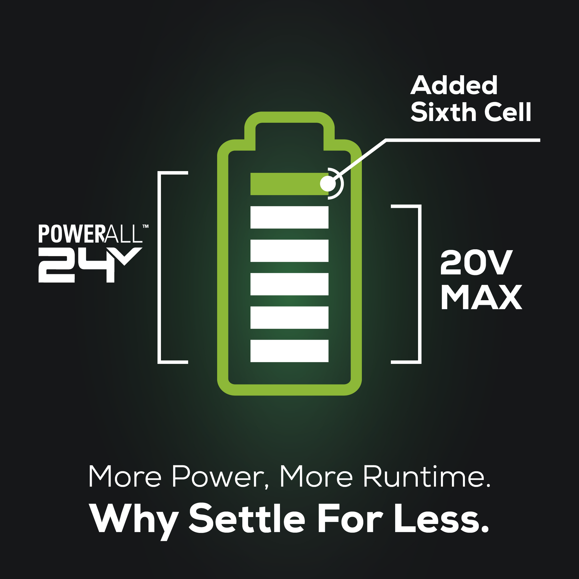 - 24V PowerAll System compatible with 125+ products and provide 35% more run-time than 18V batteries